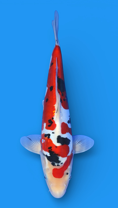 Okawa Doitsu Sanke this really does stand out in the bowl again another great Koi to just watch and with time you will get your just reward.Tosai 35cm